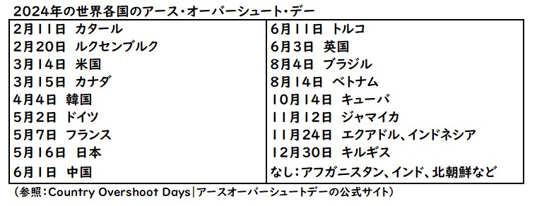 2024年 日本のアース・オーバーシュート・デーは5月16日