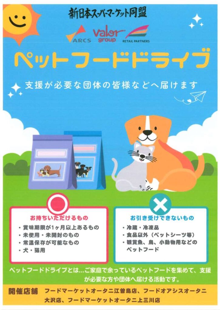 ※ペットフードドライブ・・・ご家庭で余っているペットフードを集めて、支援が必要な方や団体へ届ける活動